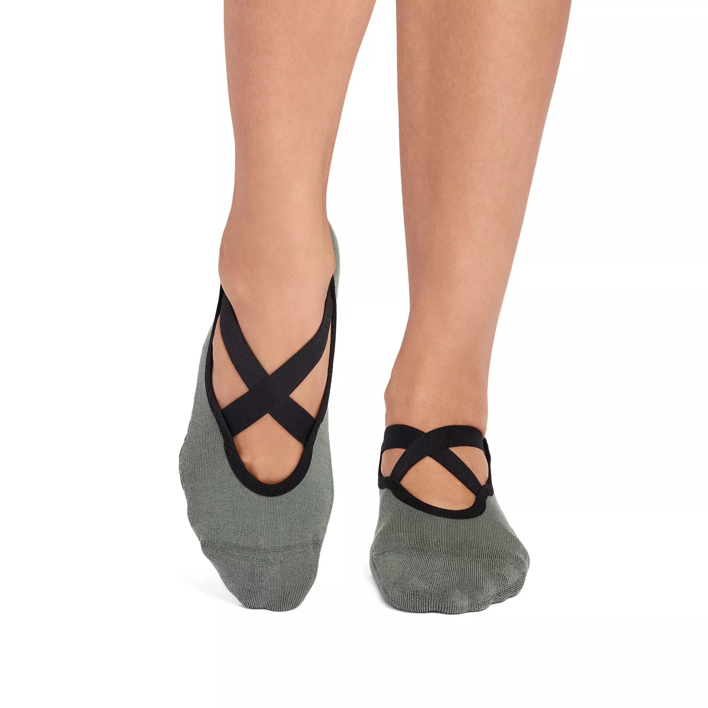 Chloe is a sweetly criss crossed ballet slipper grip sock. Her low design hugs the foot just below the ankle while TAVI's stellar grip sock pattern safely moves you through your barre, Pilates and yoga classes.