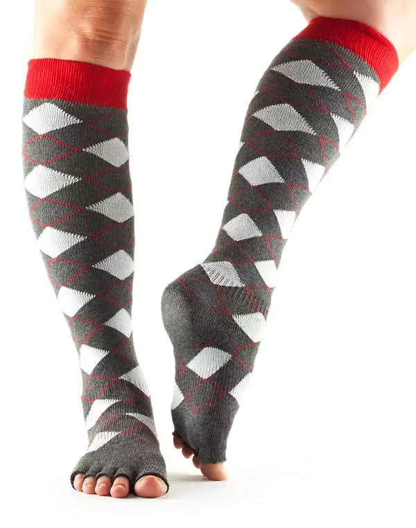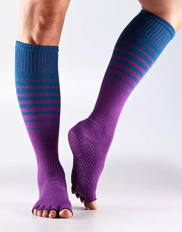 Featuring an ergonomic fit and arch support, our toeless pilates socks are available in different lengths: