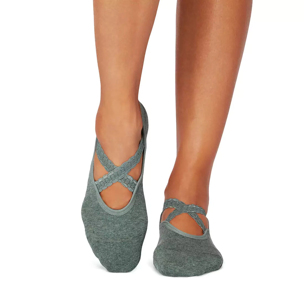 Chloe is a sweetly criss crossed ballet slipper grip sock. Her low design hugs the foot just below the ankle while TAVI's stellar grip sock pattern safely moves you through your barre, Pilates and yoga classes.